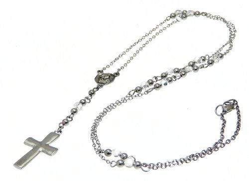 Neptune Cadeaux Rosaire Collier perle avec Hématite Croix / Crucifix pendentif. La longueur maximale du collier est de 72 cm (28 pouces) avec une nouvelle baisse de 3,75 cm à la croix. Le collier est fixé à l'aide d'un fermoir est donc réglable. La croix est d'environ 3 cm de long. Un collier magnifiquement fleuri.
