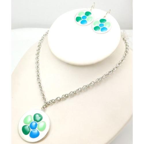 Collier de 45cm et Boucles d'oreilles Verts et Bleus par La Olivia Collection