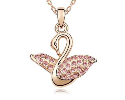 Ninabox - Collier Cygne - Alliage plaqué or - Cristal de Swarovski Elements rose - 40 cm