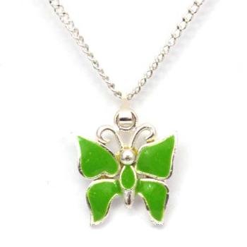 Pendentif en Argent Plaqué et Email Vert en Forme de Papillon sur une Chaîne de 40cm Présenté par La Olivia Collection