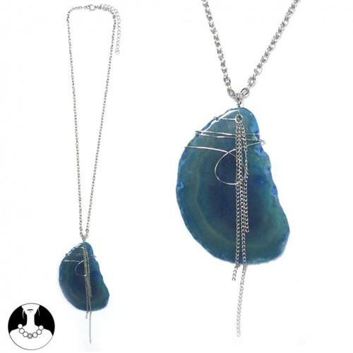Sg paris bijoux fantaisie collier femme matieres naturelles pierre nat / perle eau dou bleu