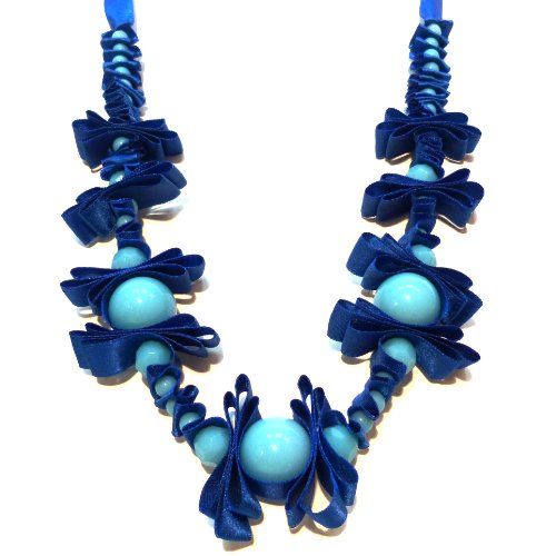 Ange Out Of The City - Collier Sautoir femme Bleu et Bleu Ciel - Ruban De Satin Ajustable Et Perles