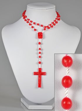 - Ce chapelet Fashion est en plastique rouge sur cordelette, 42cm.