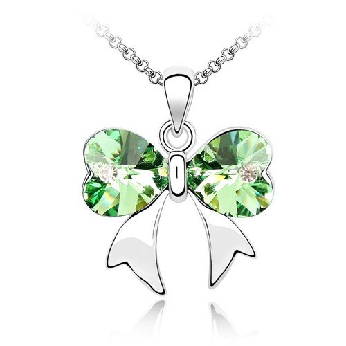 Collier Femme Noeud Papillon - Cristal de Swarovski Eléments - Vert - Chaîne en Plaqué Or Blanc 18 Carats - 45 cm