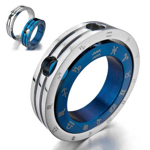 Justeel Homme Acier Inoxydable Pendentif Collier Bleu Argent Zodiaque Couple Anneau Poli ,58cm chaîne (Avec Sac Cadeau)