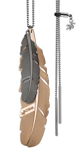 PLUS QUE DES BIJOUX - DE VERITABLE BOUCLIERS DE JUNGLE URBAINE - Selon les Amérindiens, les plumes d'oiseau apportent protection et attirent les énergies bénéfiques. La collection OIZO concentre ces bienfaits en 3 combinaisons de mots gravés délicatement au dos de chaque pendentif : « Vitality - strength - courage » « Love - joy - spontaneity » « Serenity - harmony - wisdom » (disponibles uniquement en anglais). CORDON, CHAINE OU BOUCLES - Les plumes OIZO peuvent être portées seules ou combinées sur un cordon coton, une chainette ou en boucles d'oreilles. SWISS MADE - Elles sont fabriquées en Suisse par des artisans qui travaillent avec une attention particulière sur le détail. SYSTÈME COULISSANT INNOVANT - Le cordon et la chainette sont équipés du système coulissant innovant développé par KOSHA. Il vous permet d'une part de régler à votre guise la longueur et d'autre part d'ouvrir facilement la boucle pour changer ou combiner les pendentifs comme il vous plait. MATIERES ET DIMENSIONS - Les bijoux OIZO se déclinent en 3 tailles: 80mm, 65mm, 50mm et en 3 finitions: ACIER INOX Acier de haute qualité qui allie flexibilité et résistance. OR NOIR Dorage 9 carats d'or et de rhodium déposé sur une base en acier inox. OR ROUGE Dorage 16 carats d'or et de cuivre déposé sur une base en acier inox. Chaque pièce est recouverte d'un vernis protecteur transparent. ECRIN CADEAU - Les bijoux de la collection OIZO sont proposés dans un bel écrin réalisé avec du carton recyclé et de la sérigraphie blanche. Il est produit en Suisse par une organisation sociale qui emploie du personnel handicapé.