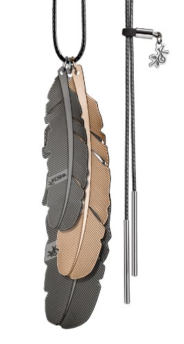 PLUS QUE DES BIJOUX - DE VERITABLE BOUCLIERS DE JUNGLE URBAINE - Selon les Amérindiens, les plumes d'oiseau apportent protection et attirent les énergies bénéfiques. La collection OIZO concentre ces bienfaits en 3 combinaisons de mots gravés délicatement au dos de chaque pendentif : « Vitality - strength - courage » « Love - joy - spontaneity » « Serenity - harmony - wisdom » (disponibles uniquement en anglais). CORDON, CHAINE OU BOUCLES - Les plumes OIZO peuvent être portées seules ou combinées sur un cordon coton, une chainette ou en boucles d'oreilles. SWISS MADE - Elles sont fabriquées en Suisse par des artisans qui travaillent avec une attention particulière sur le détail. SYSTÈME COULISSANT INNOVANT - Le cordon et la chainette sont équipés du système coulissant innovant développé par KOSHA. Il vous permet d'une part de régler à votre guise la longueur et d'autre part d'ouvrir facilement la boucle pour changer ou combiner les pendentifs comme il vous plait. MATIERES ET DIMENSIONS - Les bijoux OIZO se déclinent en 3 tailles: 80mm, 65mm, 50mm et en 3 finitions: ACIER INOX Acier de haute qualité qui allie flexibilité et résistance. OR NOIR Dorage 9 carats d'or et de rhodium déposé sur une base en acier inox. OR ROUGE Dorage 16 carats d'or et de cuivre déposé sur une base en acier inox. Chaque pièce est recouverte d'un vernis protecteur transparent. ECRIN CADEAU - Les bijoux de la collection OIZO sont proposés dans un bel écrin réalisé avec du carton recyclé et de la sérigraphie blanche. Il est produit en Suisse par une organisation sociale qui emploie du personnel handicapé.