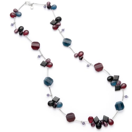 Leonardo - 013350 - Berry Colours - Collier Femme - Acier Inoxydable - Perle de Verre - Bleu Nuit/Rouge/Pourpre - 80 cm