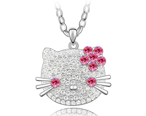 Ninabox - Série Forest elf - Collier kitty cat - Cristal Swarovski elements rose - Plaqué or blanc - 60 cm: Amazon.fr: Bijoux