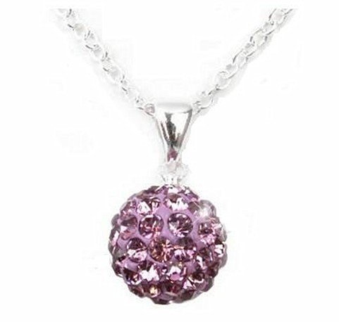 Pendentif Style Shamballa Cristal 12 mm - Violet - Chaîne en acier 45 cm