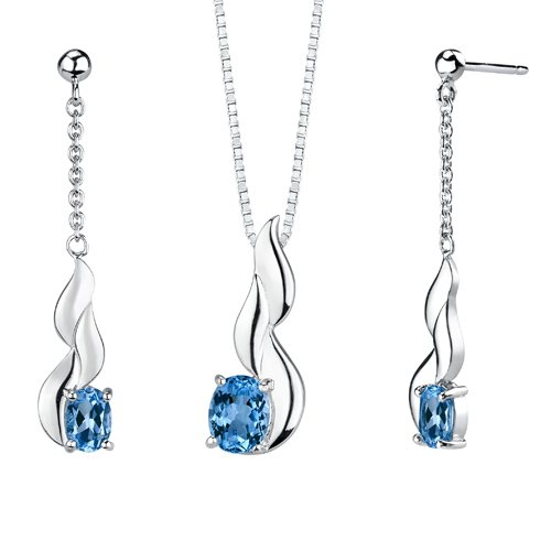 Revoni Ensemble de Lumière - Collier et Boucles d'oreilles pendantes sertis avec Topaze bleu de Londres 4,25 cts. - Inspiration pour femme - Argent fin 925/1000