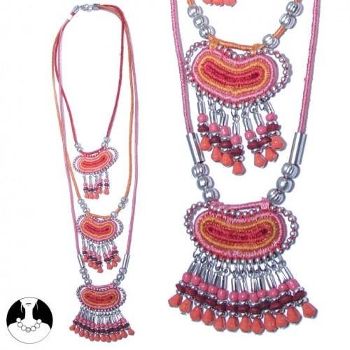 SG PARIS BIJOUX FANTAISIE COLLIER METAL-MATIERE AUTRES ROSE FRANGE ET POMPON
