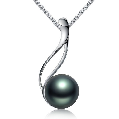 Rue des bijoux - Collier Femme de Perle Noire de Tahiti - Argent Fin 925/1000 et Perle de 9-10mm classe AAA - Forme Unique - Taille 45cm - Vente Seule et Très Élégant